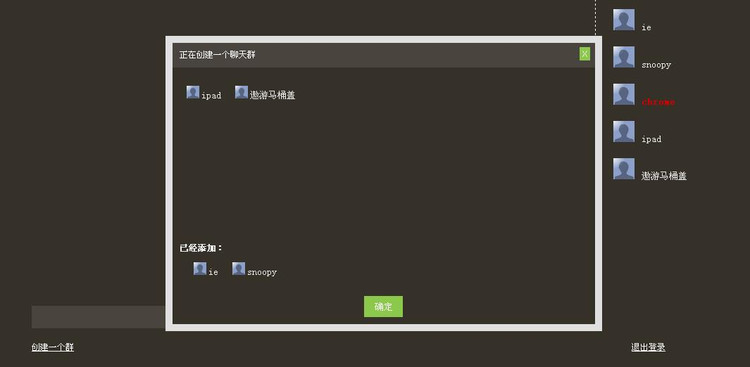 4.这是创建群的截图,成员列表会在群窗口罗列出来,方便点击移动到下面添加列表中